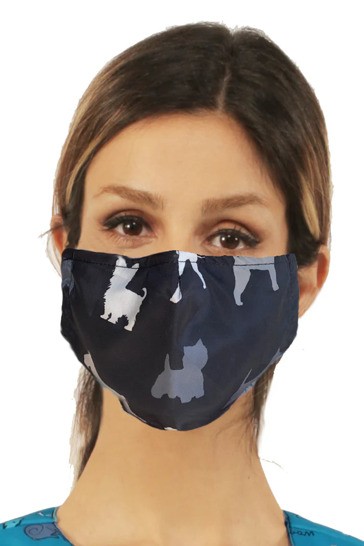 Equipped with a wire nose piece and elastic band ear pieces, this mask offers a secure fit that stays in place no matter how active you are. Plus, the fun terrier breed print lets your personality shine through while showcasing your love for dogs!