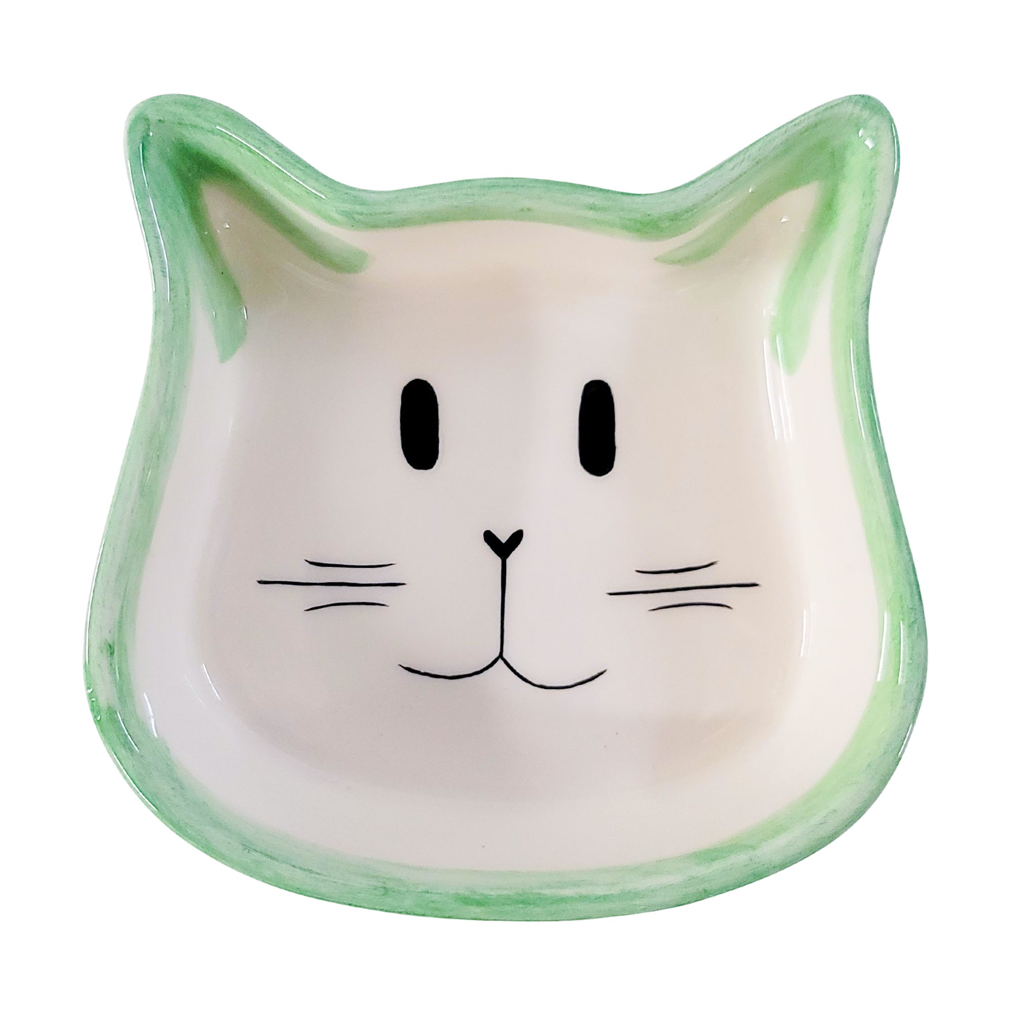 Handmade Cat Head Ceramic Bowl – Lead-Free, Non-Toxic, USA Made Pet Dish (Pink & Green)
